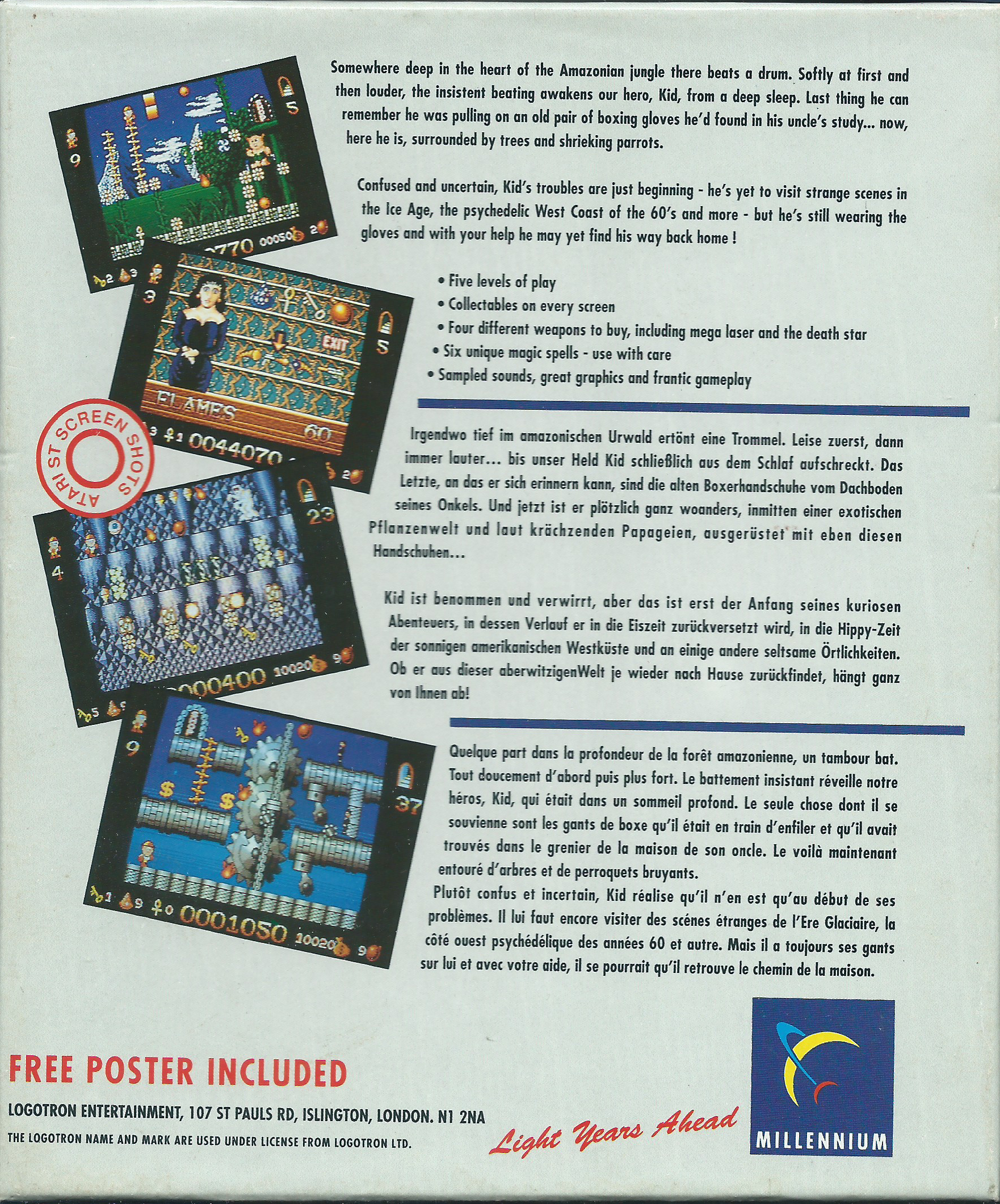 A nice platformer for the ST. Not nearly as good as the follow up, but fun anyway if you love the platform genre.