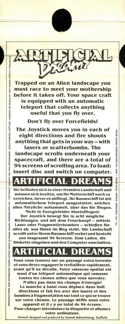 This is a 1990 release (budget re-release) of Artificial Dreams. It was released in Europe, published by 16-bit Pocket Power Collection. Its license is commercial.