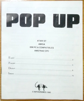 This is a 1990 release of Pop-up. It was published by Infogrames. Its license is commercial.