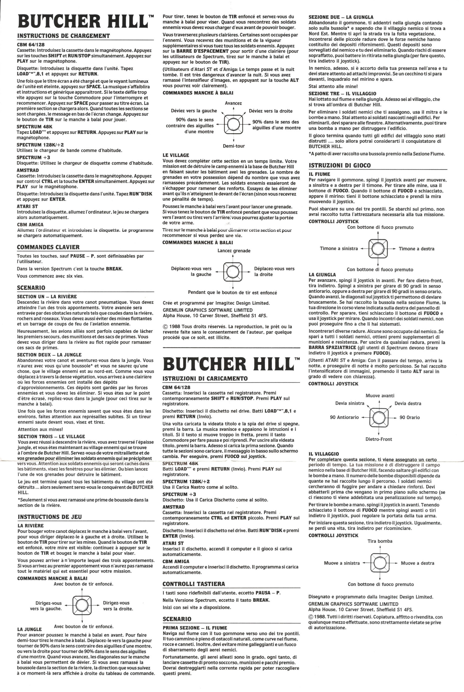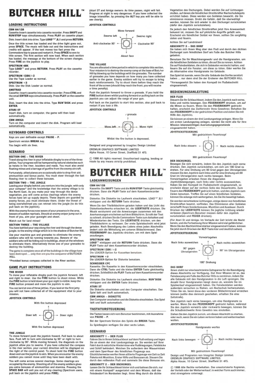 This is a 1988 release of Butcher Hill. It was published by Gremlin Graphics. Its license is commercial.