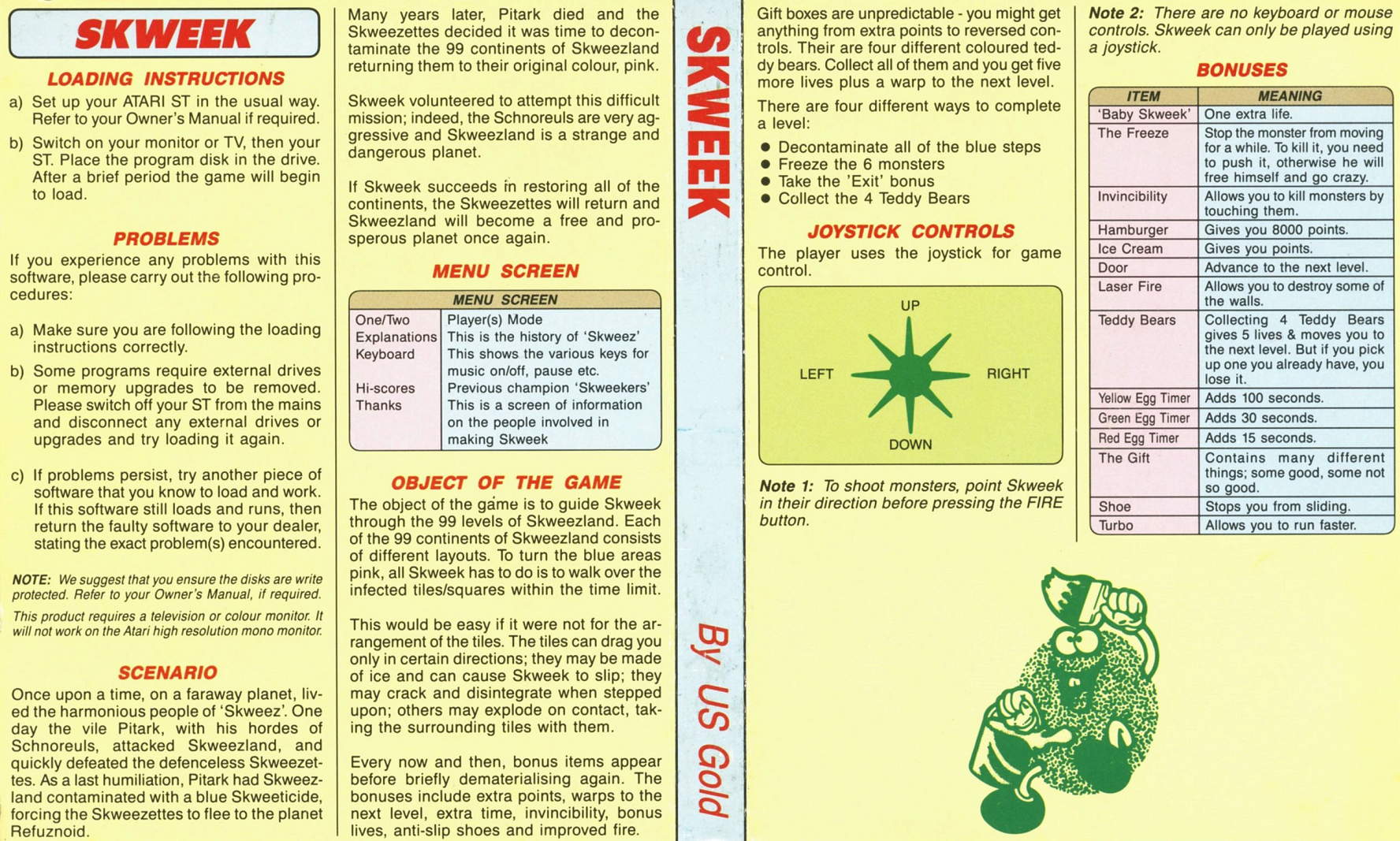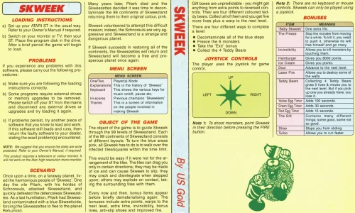 This is a 1989 release of Skweek. It was published by U.S. Gold Ltd. Its license is commercial.