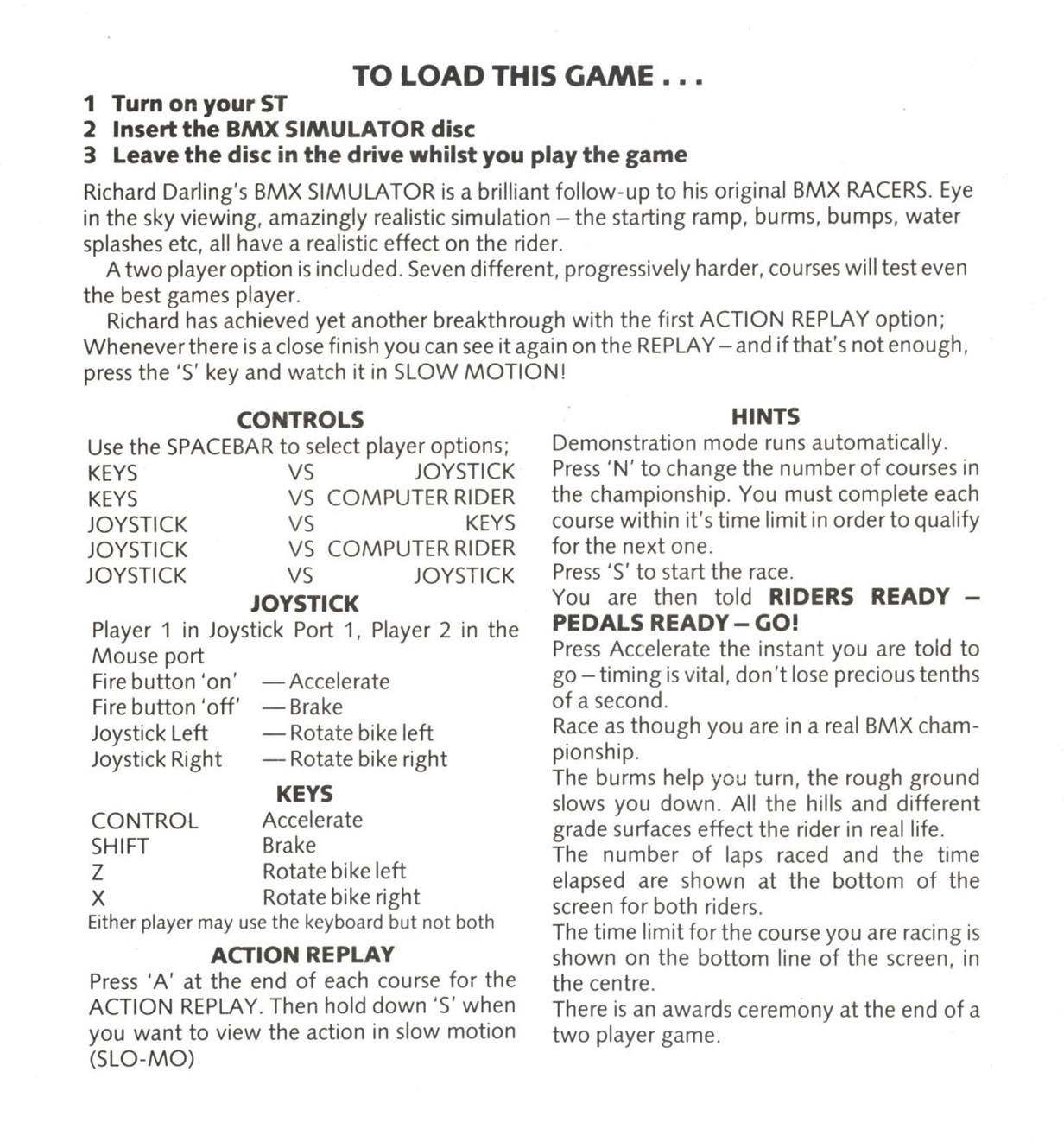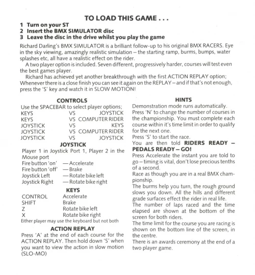 This is a 1988 release of BMX Simulator. It was published by Codemasters. Its license is commercial.
