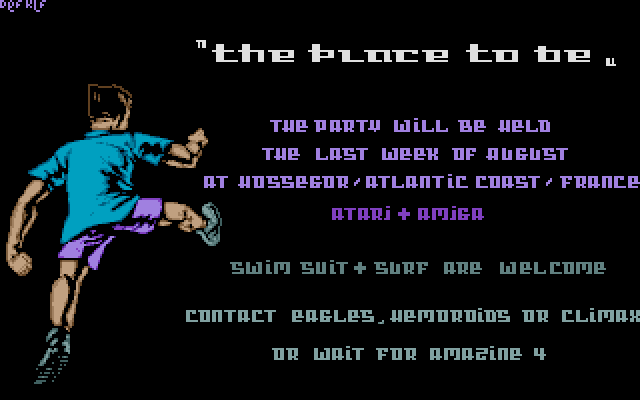 Attacks and mockery were multiplied against the "lamers" of the other cracking crews (mainly French) and some groups of the demoscene. Some people appreciated us for our bluster, while other people ranked us in the asshole category (they weren't really wrong). When I left the Atari scene, I did not cultivate the memory of all that: I was aware of the puerility of some of my texts...