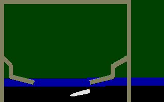 Then I was in the middle of an extraordinarily tedious solid state physics lecture when I worked out a theory of how, if I decomposed ball velocity into tangential and normal components to the wall, then I could simulate surface bounciness and roll, and also apply kickers and the like. By the end of the lecture I’d also worked out a cheap method to calculate the angle by which a ball hit a bitmap that marked the solid parts of the level. I then hacked something up in a couple of days to test it out and was more than a little surprised when it just worked even when combined with very simple drawn images and gravity models.