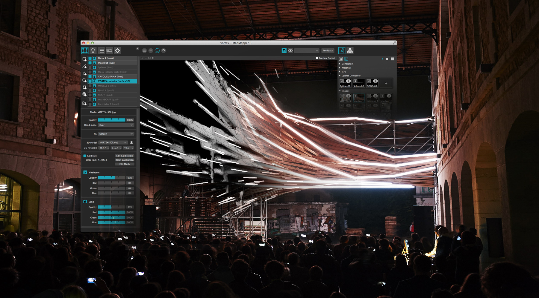 Hi, I’m Francois WUNSCHEL, French media artist and architect, born in Strasbourg. I mastered Architecture in 2003, dived early into architectural computer rendering, created a CGI company named Chateau Cyborg in 2005. Then I moved to architectural installations and scenography and created a company named 1024 architecture, which in 2010 co-created, along with Swiss-based developer garageCube, a realtime video and light mapping software, the MadMapper. Then in 2015, the company created a Raspberry Pi-based autonomous video mapping player called the miniMad. And finally in 2021 we just released the MadLaser, allowing artists to control and live code graphics for laser systems.