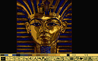 The famous Tutankhamun mask in the art package Deluxe Paint, which was used by Francois to create Alien Blast.