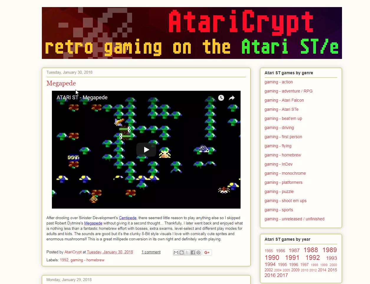 This blog contains tons of reviews for Atari ST games. Our personal favorite. And Steve is a great guy!