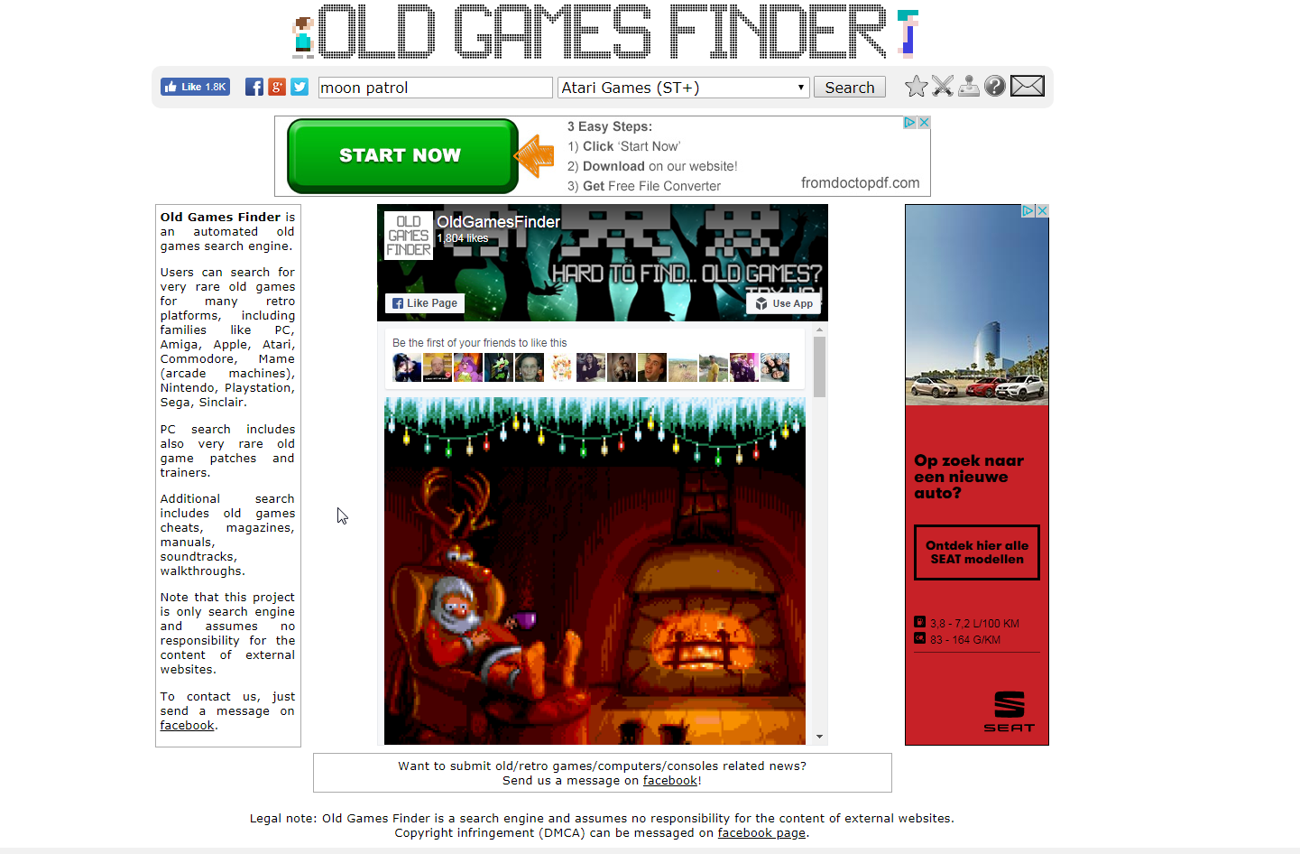 Old Games Finder is an automated old games search engine. Users can search for very rare old games for many retro platforms, including families like PC, Amiga, Apple, Atari, Commodore, Mame (arcade machines), Nintendo, Playstation, Sega, Sinclair.