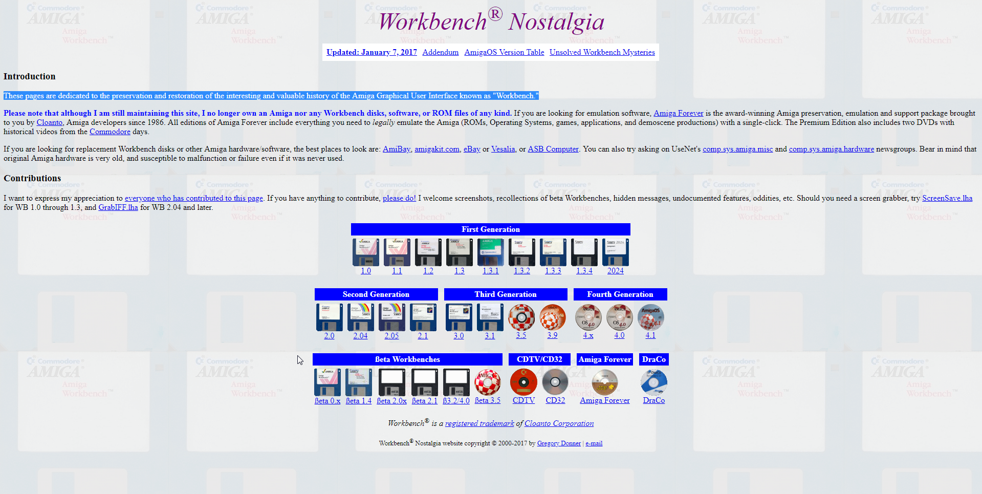 These pages are dedicated to the preservation and restoration of the interesting and valuable history of the Amiga Graphical User Interface known as "Workbench."