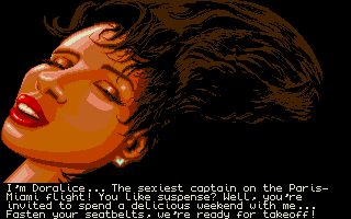 So you play as Doralice, a sexy air hostess. On your flight to Miami, a man collapses on the plane suffering from a stroke. Before breathing his dying breath, he hands over a briefcase containing a ‘dangerous’ substance. Because of this chain of events, you are unwillingly dragged into a murder mystery. It is up to you to find out what is in the case and what it is all about.
