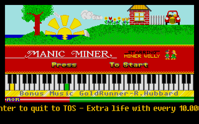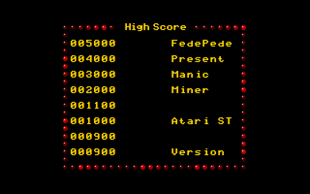 The conversion process of the sequel to the orginal Manic Miner, called Jet Set Willy, was started back in the day, but eventually cancelled. So we never had the chance to play a Willy game on our precious ST, up until now. (ed : Jet Set Willy was eventually reversed engineered and unofficially released in 1998) As a first game, Bionic Nerd has made something to be proud of. If you are not afraid of a real challenge and want to know what games were all about in the first half of the 80s, Manic Miner is a beautiful example. And even though it might feel unfair at first, and lots of perseverance is needed, it is addictive as hell. You will be playing quite a bit if you want to experience the end sequence ... Unless you cheat, of course ...