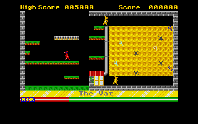 Willy has 2 lives which you will lose before you know it. You can earn an extra life every 10000 points you score, but don't count on that too much. Starting from the first level, the difficulty is brutal. This is something we are not used to experiencing any more in modern gaming, but the creator assures me that it is very true to how it originally was.